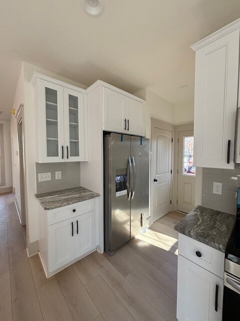 The kitchen is equipped with sleek cabinetry, stainless steel appliances, and a spacious island ideal for entertaining. The primary suite boasts a luxurious ensuite bath and a walk-in closet. Two additional bedrooms provide versatile space for a home office or guest accommodations.